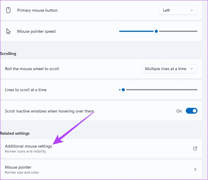 مرحله 2: به پایین بروید و روی تنظیمات اضافی ماوس کلیک کنید.