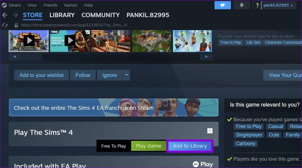 اگر Steam نتواند فایل های یک بازی نصب شده را شناسایی کند، مرحله 1: کلاینت Steam را باز کنید و بازی گم شده را جستجو کنید.سپس، روی دکمه افزودن به کتابخانه کلیک کنید.