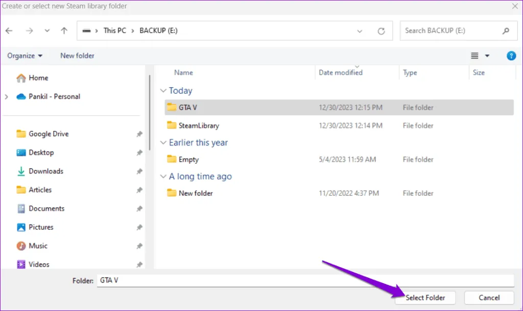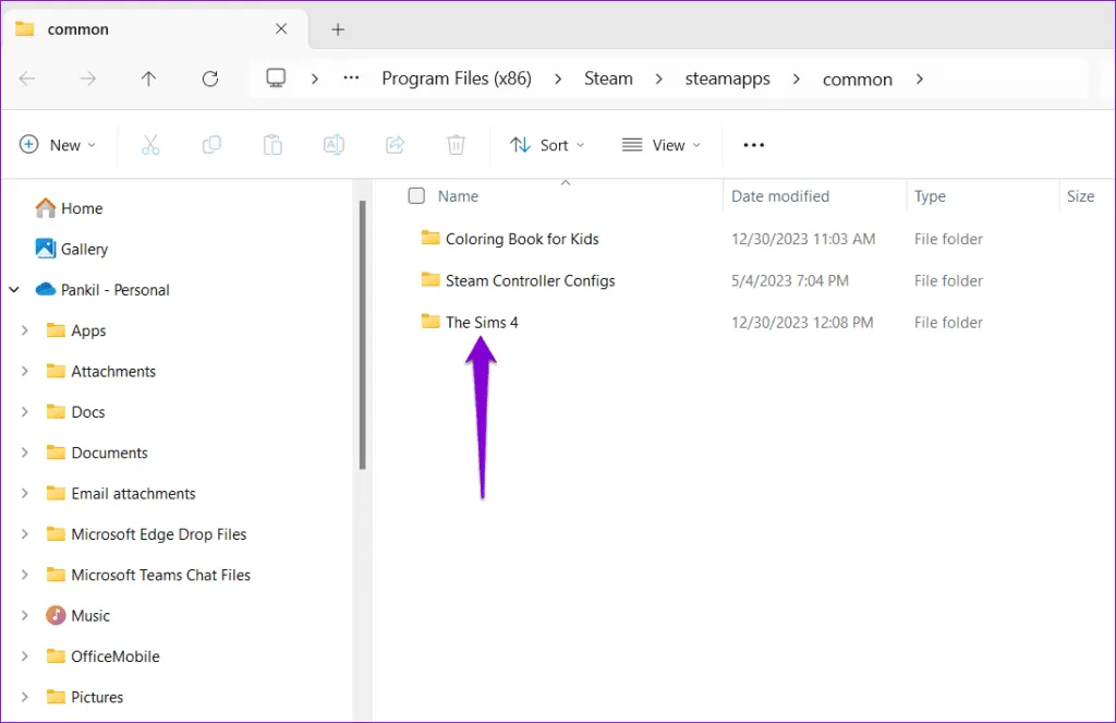 مرحله 2: در پنجره File Explorer، مطمئن شوید که پوشه مرتبط با بازی در دسترس است.در صورت وجود، می توانید Steam را مجبور کنید آن را شناسایی کند.
