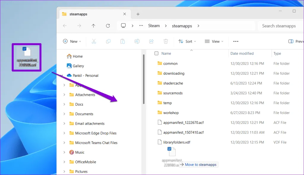 مرحله 7: سرویس گیرنده Steam را ببندید و سپس فایل ACF را از دسکتاپ خود به دایرکتوری C:\\Program Files (x86)\\Steam\\steamapps برگردانید..