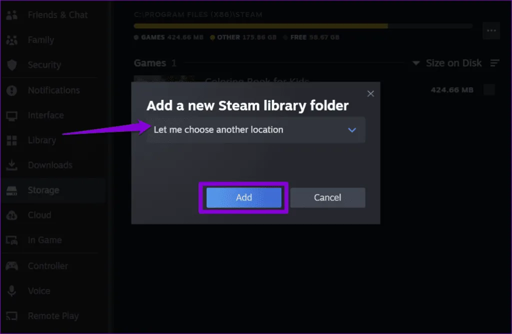 3.بازی خود را به صورت دستی با استفاده از Steam Storage Manager اضافه کنید.