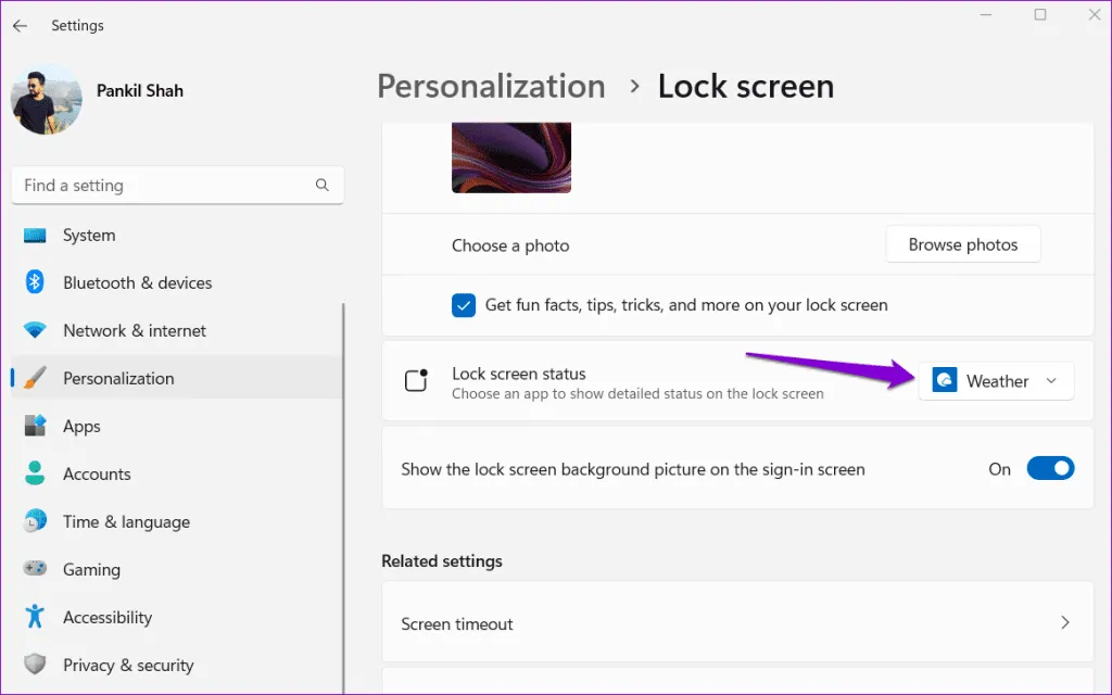 آیا برنامه Weather هیچ داده ای را در صفحه قفل ویندوز نشان نمی دهد؟ عدم کارکرد برنامه مرحله 1: میانبر صفحه کلید Windows key I را فشار دهید تا برنامه تنظیمات باز شود.به تب Personalization بروید و روی Lock screen کلیک کنید.
