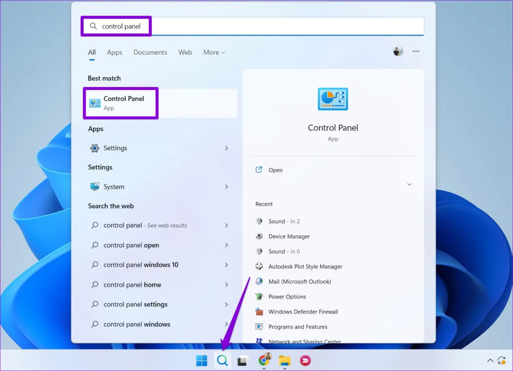 اگر تعمیر فایل های داده Outlook بی اثر باشد، ممکن است مشکلی در نمایه Outlook شما وجود داشته باشد.در آن صورت، بهترین گزینه شما ایجاد و تغییر به یک نمایه جدید است.در اینجا نحوه انجام آن آمده است. مرحله 1: روی نماد جستجو در نوار وظیفه کلیک کنید، کنترل پنل را در کادر تایپ کنید و Enter را فشار دهید.