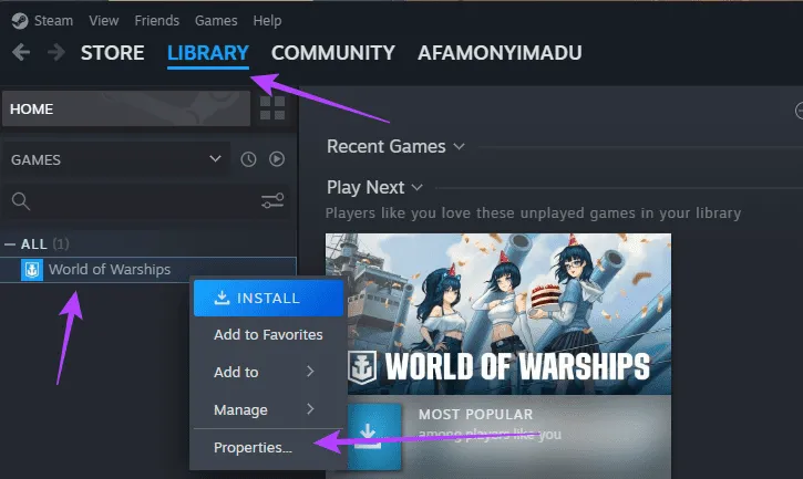 ما تعمیر فایل های آسیب دیده را در راه حل بالا بررسی کردیم.با این حال، باید توجه داشته باشید که بسیاری از کاربران هنگام استفاده از برنامه های بازی با این خطا مواجه می شوند.اگر چنین است، می توانید فایل های خاص بازی مشکل دار را تعمیر کنید.فرآیند بسته به فروشنده متفاوت است. .خطا Insufficient مرحله 1: برنامه Steam را اجرا کنید، روی تب Library کلیک کنید، روی بازی مشکل دار کلیک راست کرده و خواص را انتخاب کنید..