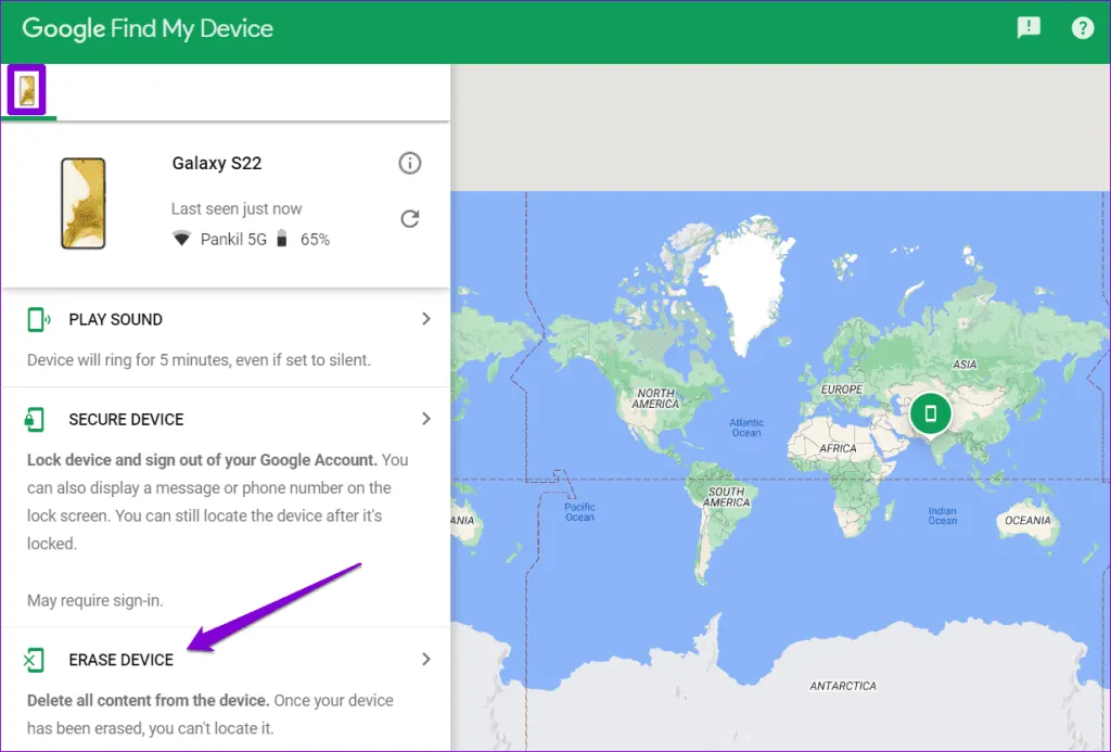 7. با استفاده از Find My Device گوشی خود را بازنشانی کنید.