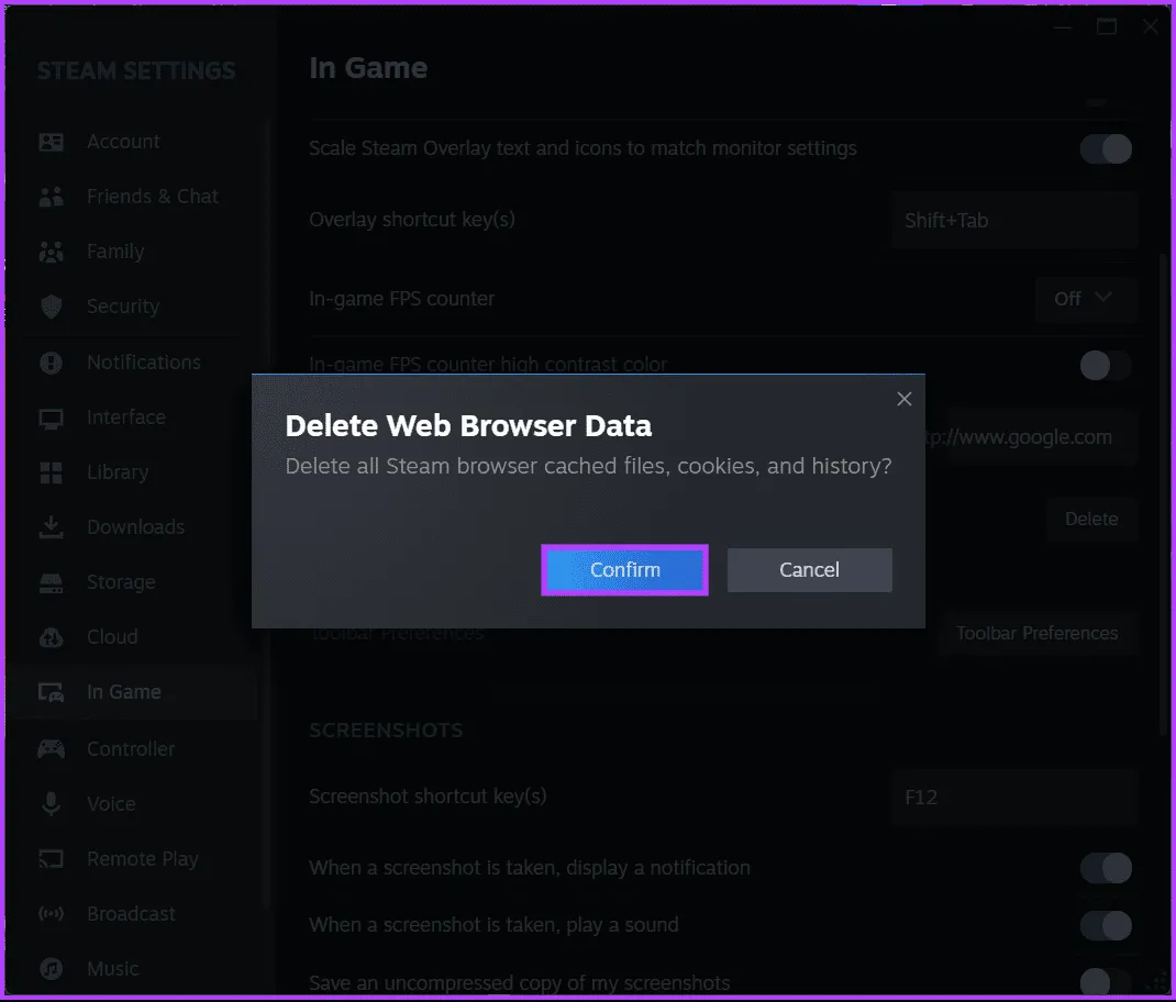 2.کش مرورگر وب را در استیم کلاینت پاک کنید.