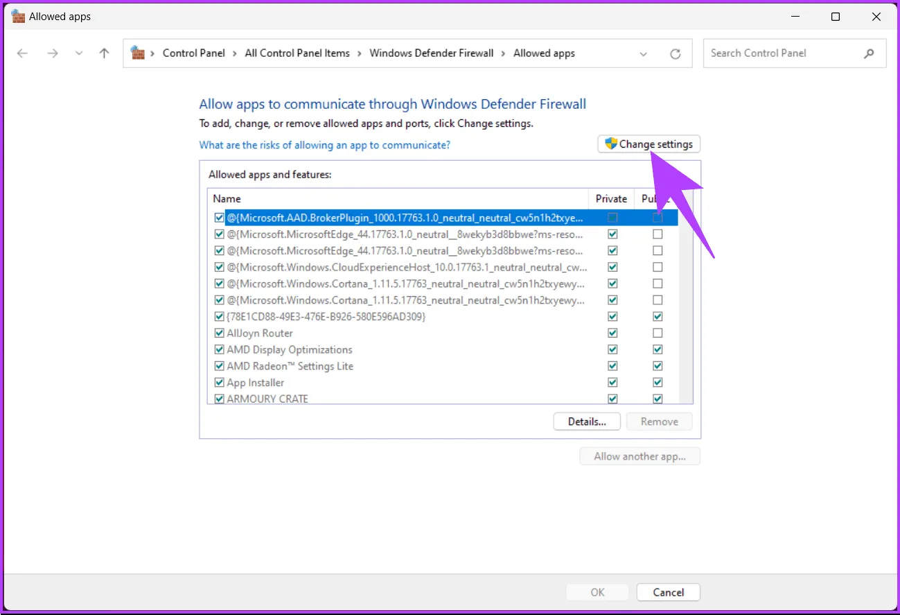مرحله 3:.سپس، روی OK کلیک کنید.توجه: اگر نمیتوانید برنامه یا برنامهای را در لیست پیدا کنید، روی دکمه اجازه دادن به برنامه دیگری کلیک کنید تا آن را اضافه کنید..