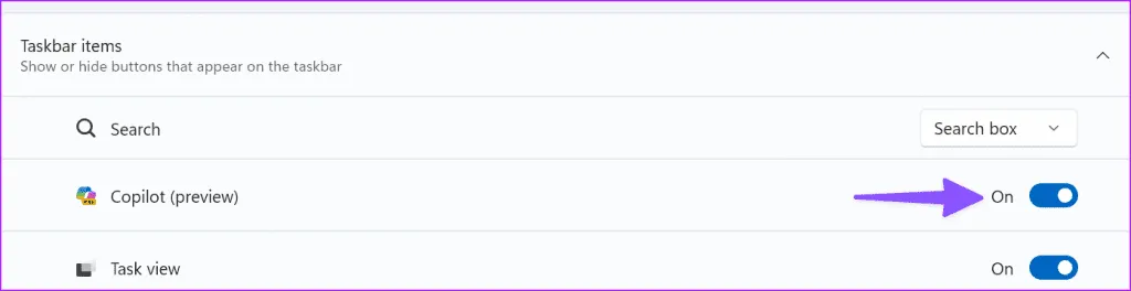 8.Copilot را در نوار وظیفه مخفی کنید.