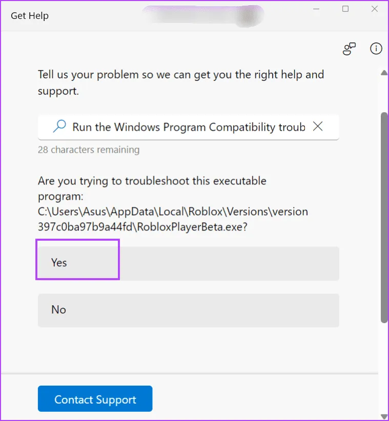 اکنون، باید تنظیمات سازگاری اصلاح شده را آزمایش کنید. مرحله 1: روی دکمه Run compatibility troubleshooter کلیک کنید.