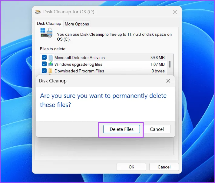 مرحله 6: روی دکمه Delete Files کلیک کنید.
