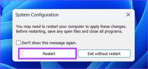 مرحله 5: از منوی بعدی، روی دکمه Restart کلیک کنید.
