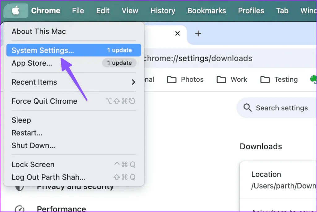 مرحله 1: روی نماد Apple در گوشه بالا سمت چپ کلیک کنید و تنظیمات سیستم را باز کنید.