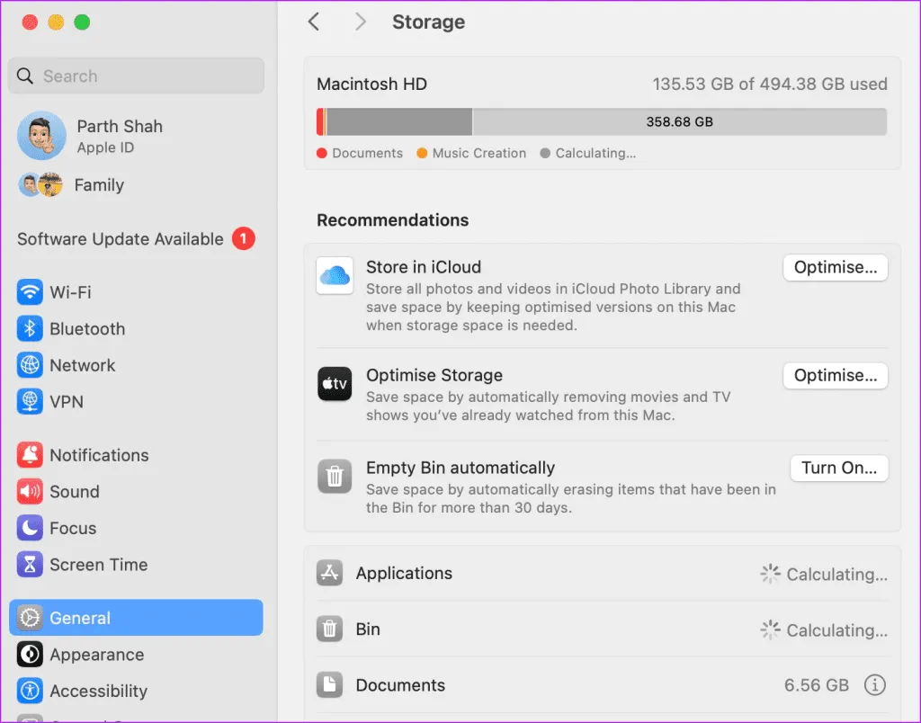 مرحله 3: تفکیک فضای ذخیره سازی را از منوی زیر بررسی کنید و به توصیه هایی برای آزاد کردن فضا نگاه کنید.