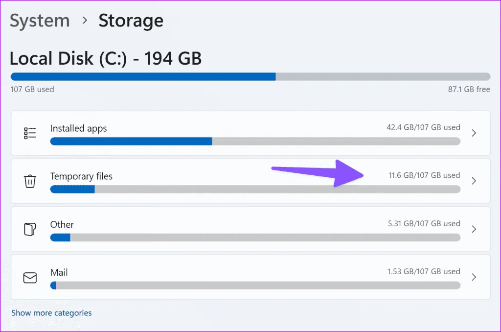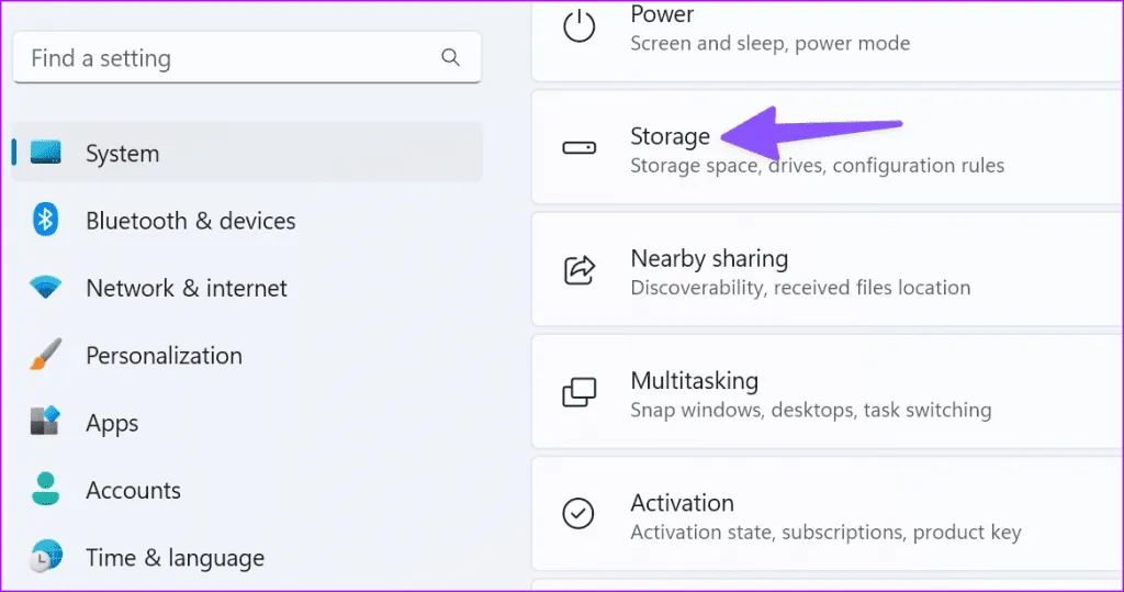 مرحله 1: برای باز کردن تنظیمات، کلیدهای Windows I را فشار دهید. مرحله 2: System را انتخاب کرده و منوی Storage را باز کنید.