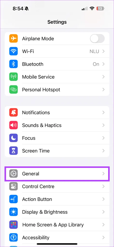 مرحله 1: برنامه تنظیمات را باز کنید و روی General ضربه بزنید.