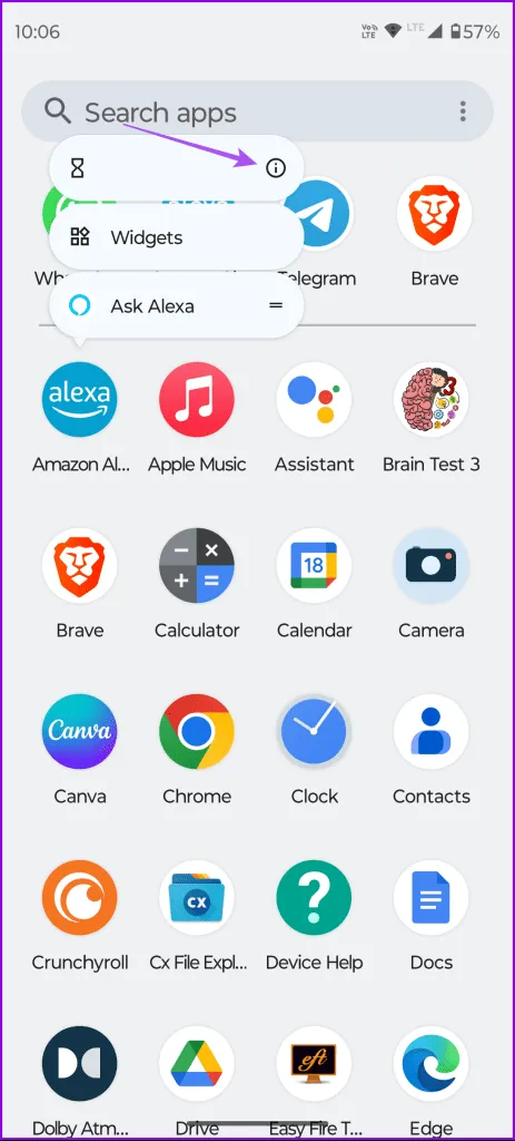 مرحله 1: نماد برنامه الکسا را \u200b\u200bطولانی فشار دهید و App Info را انتخاب کنید.