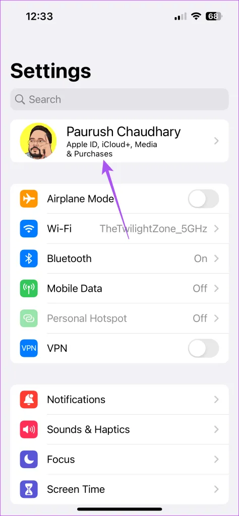 iCloud Privacy Relay فعالیت مرور و آدرس IP شما را از تبلیغکنندگان و ردیابها پنهان میکند.شما می توانید این ویژگی را برای وب سایت های خاصی در آیفون خود فعال کنید.اما iCloud Privacy Relay همچنین می تواند باعث مشکلات شبکه در برنامه هایی مانند الکسا شود.بنابراین، سعی کنید ویژگی را غیرفعال کنید و بررسی کنید که آیا مشکل را حل می کند یا خیر. مرحله 1: برنامه تنظیمات را باز کنید و روی نام حساب خود در بالا ضربه بزنید.