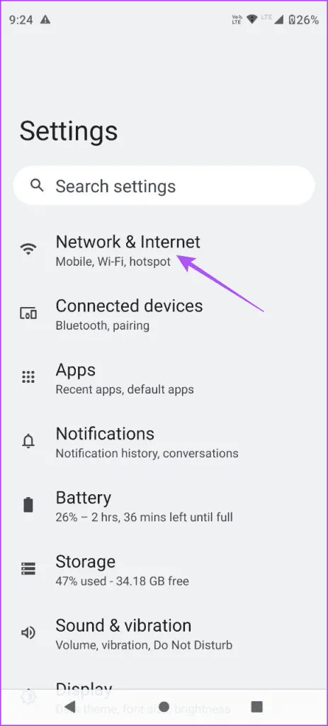 اتصال VPN به شما کمک می کند وب سایت ها را مرور کنید و از برنامه هایی استفاده کنید که در منطقه شما موجود نیستند.اما نقطه ضعف این است که می تواند از اتصال برنامه هایی مانند الکسا به دستگاه های هوشمند در شبکه شما نیز جلوگیری کند.به این ترتیب، باید VPN را غیرفعال کنید و بررسی کنید که آیا مشکل حل شده است یا خیر. مرحله 1: تنظیمات را باز کرده و Network را انتخاب کنید.
