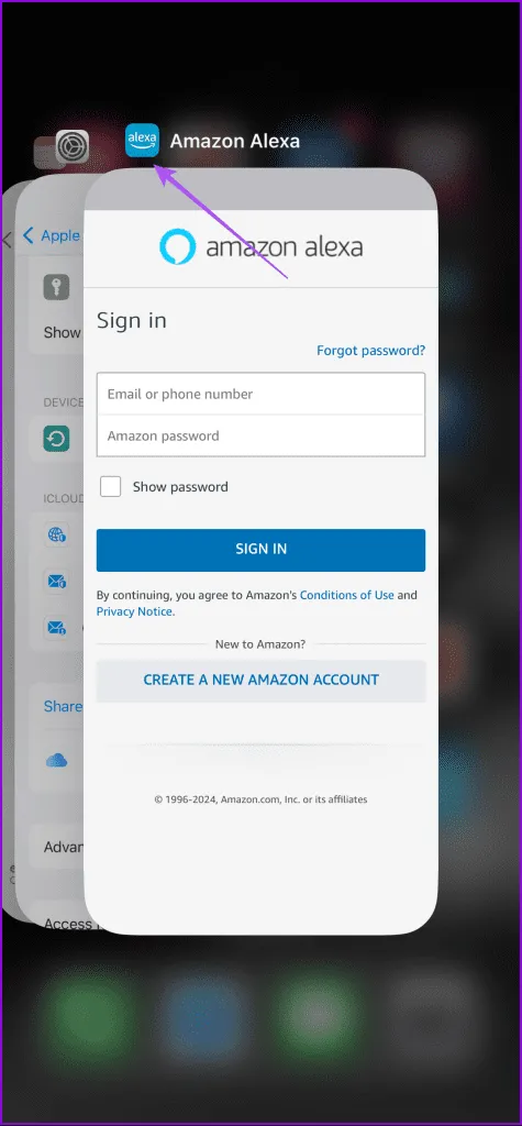 مرحله 1: در صفحه اصلی، انگشت خود را به سمت بالا بکشید و نگه دارید تا پنجره های برنامه پس زمینه ظاهر شوند. مرحله 2: برای جستجوی پنجره برنامه الکسا به سمت راست بکشید و برای حذف پنجره به بالا بکشید.