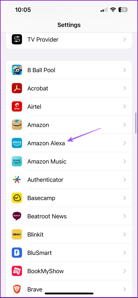 مرحله 1: برنامه تنظیمات را باز کنید و روی Amazon Alexa ضربه بزنید.