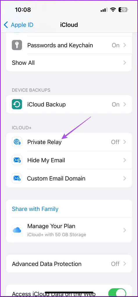 6.غیرفعال کردن iCloud Privacy Relay (iPhone).