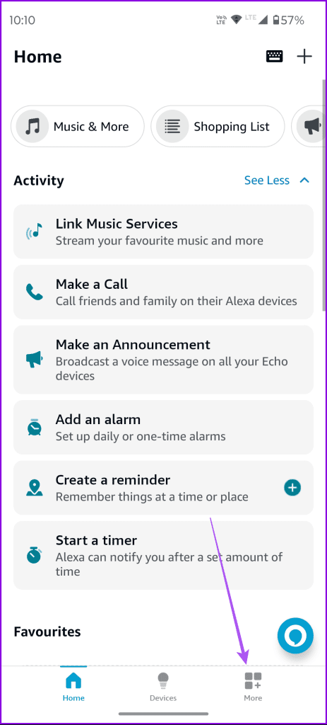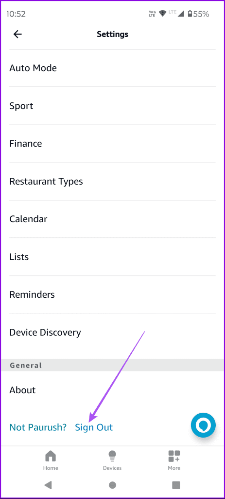 می توانید دوباره وارد حساب آمازون خود در برنامه الکسا شوید.این کار باعث میشود که نمایه کامل خود را دوباره در برنامه ثبت کنید.انجام این کار شبیه به تنظیم مجدد برنامه الکسا و بارگیری مجدد تمام دستگاه های متصل شما است. مرحله 1: بیشتر را در گوشه سمت راست پایین برنامه الکسا انتخاب کنید.