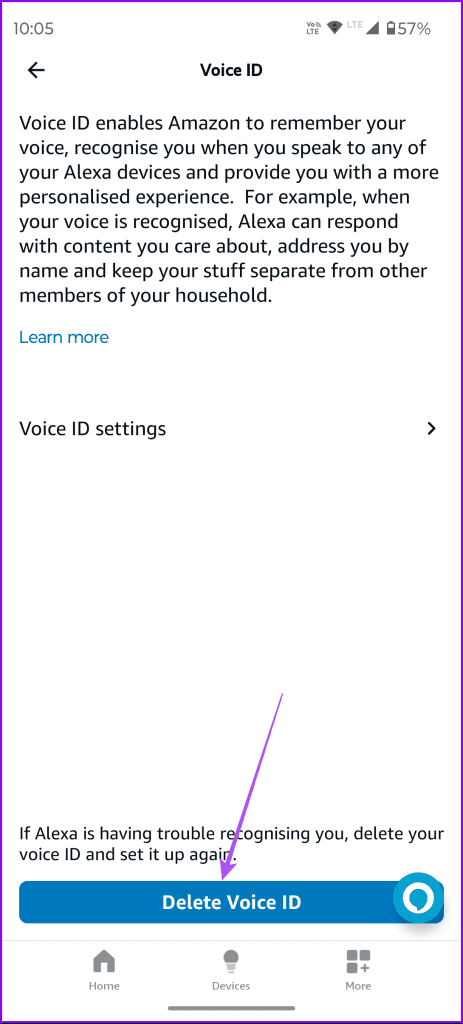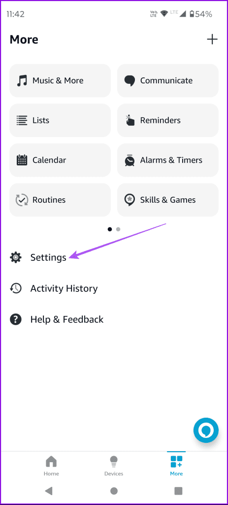 شما باید Voice ID را در برنامه الکسا تنظیم کنید تا بتواند دستورات صوتی شما را تشخیص دهد و آنها را اجرا کند..اگر برنامه دستورات صوتی شما را دریافت نمیکند، میتوانید ID صوتی خود را دوباره تنظیم کنید.مراحل برای هر دو گوشی آیفون و اندروید یکسان است. مرحله 1: برنامه الکسا را \u200b\u200bدر آیفون یا گوشی اندرویدی خود باز کنید. مرحله 2: روی More در گوشه سمت راست پایین ضربه بزنید و تنظیمات را انتخاب کنید.