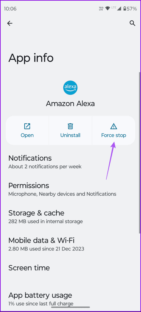 مرحله 3: اطلاعات برنامه را ببندید و الکسا را \u200b\u200bمجددا راه اندازی کنید تا بررسی کنید که آیا مشکل حل شده است یا خیر.