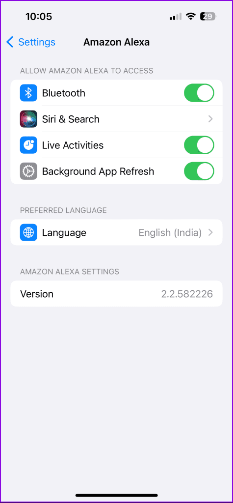 مرحله 3: مطمئن شوید که ویژگی خاموش است.سپس، تنظیمات را ببندید و برنامه الکسا را \u200b\u200bباز کنید تا بررسی کنید که آیا مشکل ادامه دارد یا خیر.