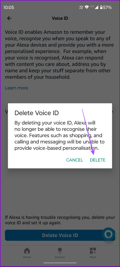 مرحله 4: روی Delete Voice ID ضربه بزنید و برای تایید دوباره Delete را انتخاب کنید.