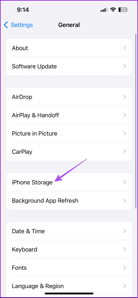مرحله 2: روی Storage ضربه بزنید.