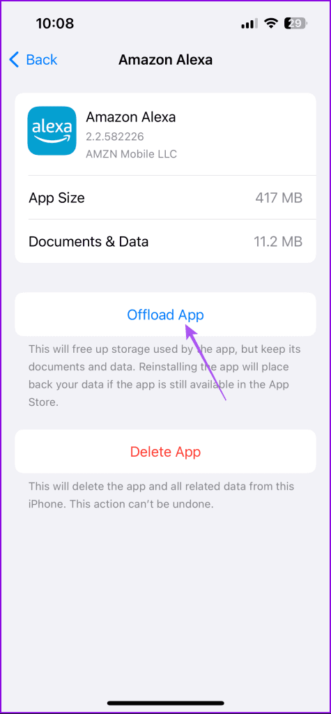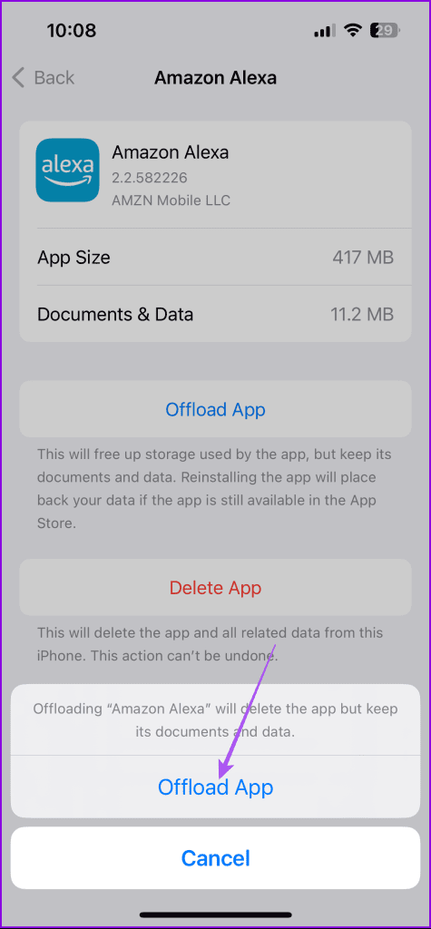 مرحله 3: روی Offload App ضربه بزنید و برای تایید دوباره Offload App را انتخاب کنید.