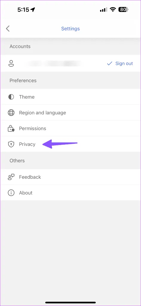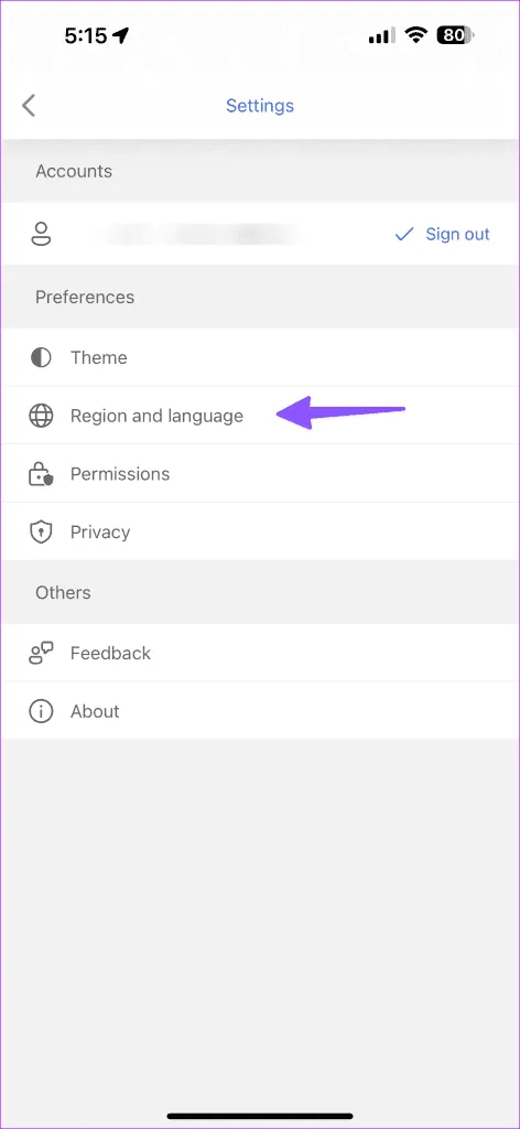 Copilot به شما امکان می دهد منطقه و زبان را برای تجربه بهتر تغییر دهید. مرحله 1: حساب Copilot را باز کنید و روی Region and Language ضربه بزنید. مرحله 2: تغییر کشور.