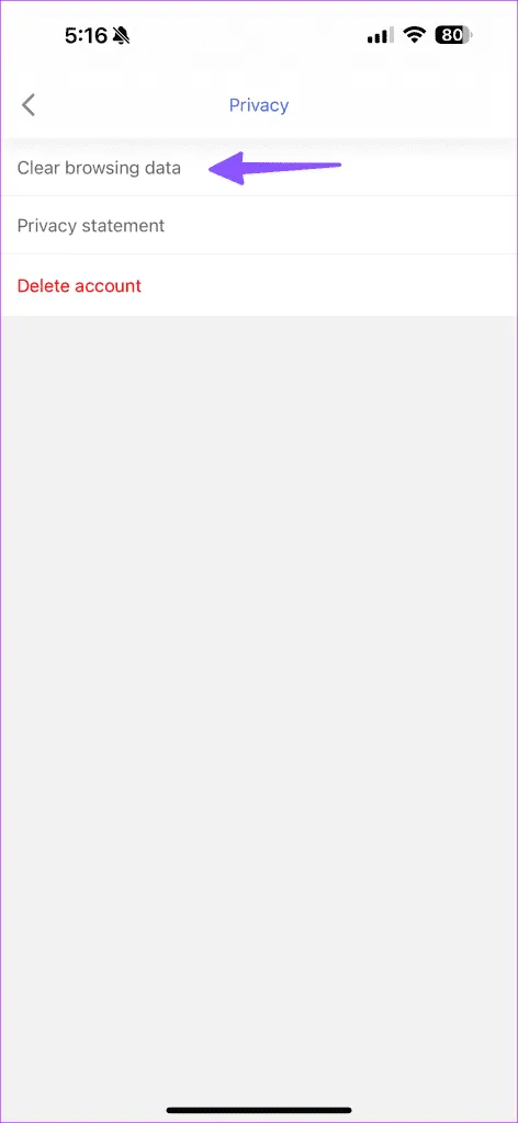 مرحله 2: Privacy را انتخاب کنید. مرحله 3: روی Clear browsing data ضربه بزنید.