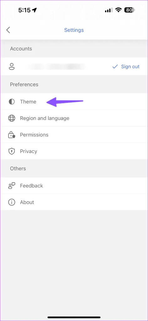 آیا اغلب در شب از Copilot استفاده می کنید؟ . مرحله 1: به حساب Copilot بروید. مرحله 2: روی Theme ضربه بزنید.Dark را انتخاب کنید.