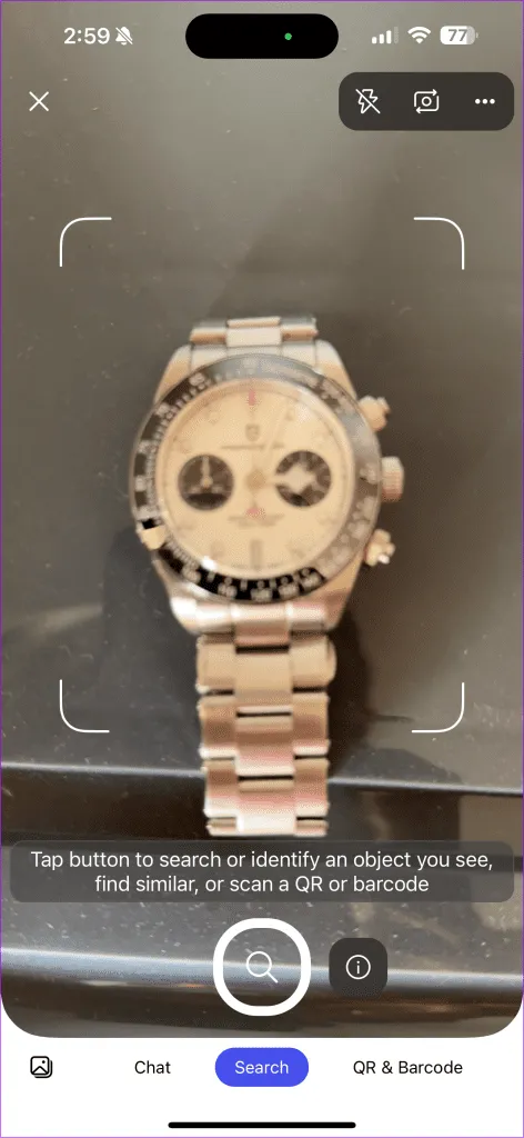 منوی جستجوی پیش فرض در Copilot بسیار قدرتمند است.دارای چندین قابلیت برای پاسخگویی به سوالات تصویر شماست.هنگامی که Camera را در Copilot راه اندازی می کنید، به منوی جستجو بلغزانید و جستجوی تصویری را امتحان کنید.آنچه را که می بینید شناسایی می کند، به شما امکان می دهد برای یک ظاهر خاص خرید کنید، و حتی متن را ضبط می کند، آن را ترجمه می کند و بارکد را اسکن می کند..