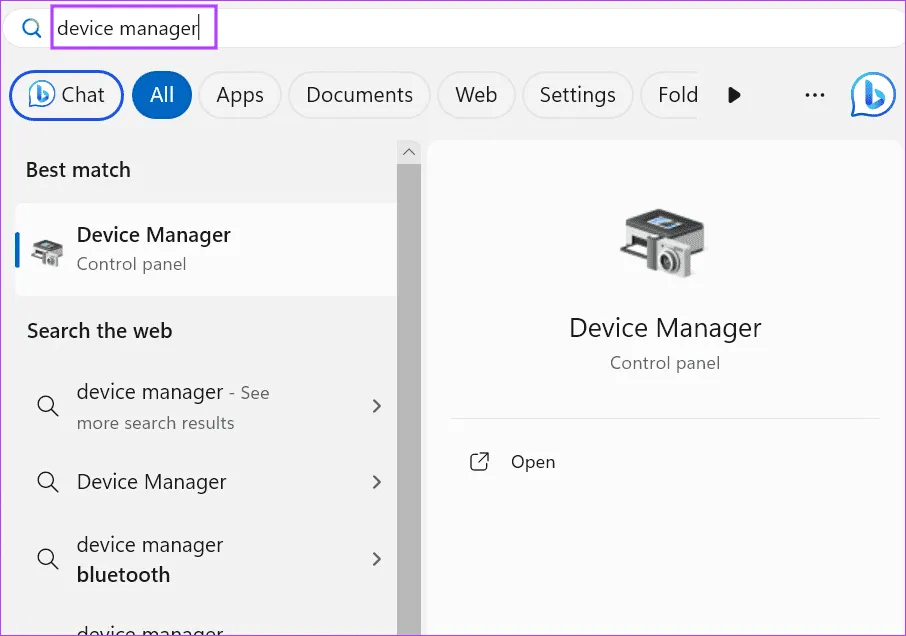 ابتدا باید تمام درایورهای نصب شده روی رایانه شخصی خود را با استفاده از Device Manager بررسی کنید.به این صورت است: مرحله 1: کلید Windows را فشار دهید تا منوی Start باز شود.Device manager را در کادر جستجو تایپ کنید و Enter را فشار دهید تا ابزار باز شود.