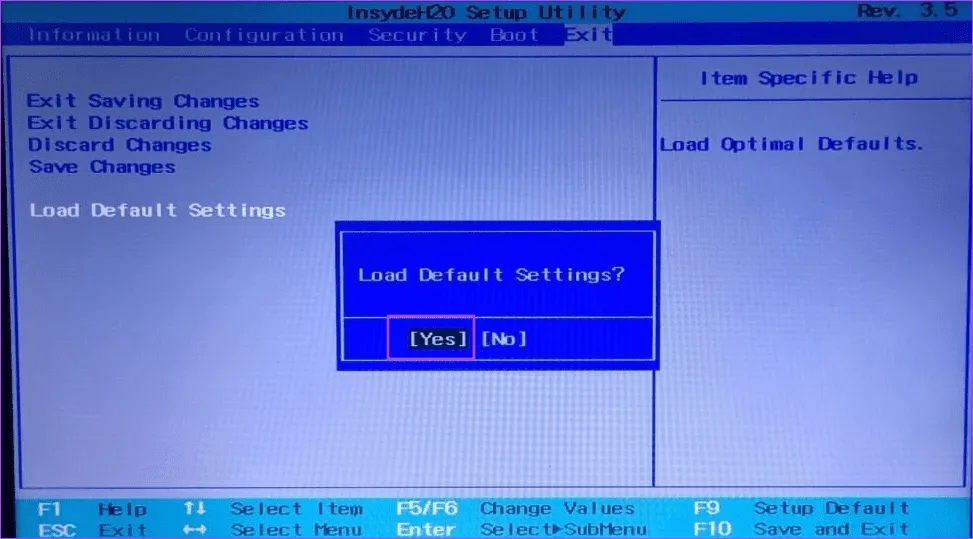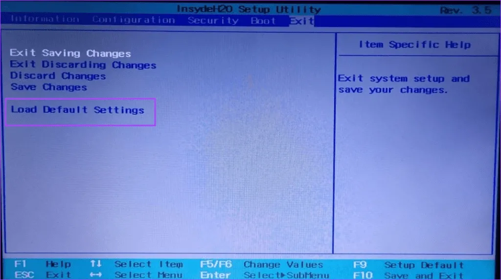 اگر بعد از تغییر تنظیمات در BIOS متوجه خطای BSOD شدید، باید آنها را به حالت پیش فرض خود برگردانید..به یاد داشته باشید که صفحه تنظیمات BIOS و منوها ممکن است در رایانه شخصی شما متفاوت ظاهر شوند. مرحله 1: کامپیوتر خود را مجددا راه اندازی کنید. مرحله 2: برای باز کردن صفحه تنظیمات BIOS، کلید F یا Esc تعیین شده را فشار دهید (کلید اتصالات را برای مدل رایانه شخصی خود بررسی کنید) مرحله 3: به تب Exit بروید.گزینه Load Default Settings را انتخاب کنید.