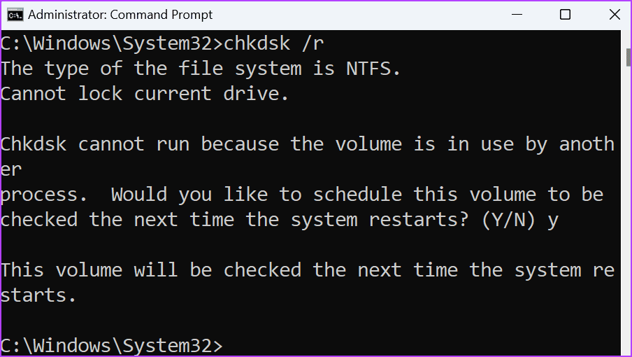 مرحله 4: سپس y را تایپ کرده و Enter را فشار دهید.