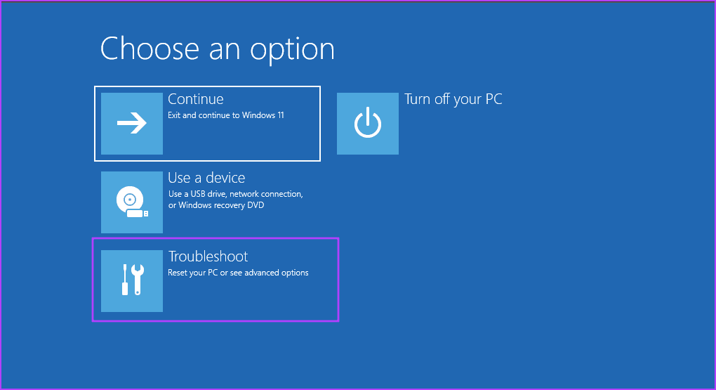 مرحله 3: روی گزینه Troubleshoot کلیک کنید.