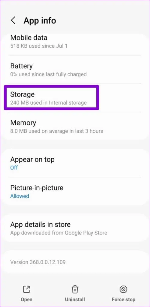 مرحله 2: به Storage بروید و روی گزینه Clear cache ضربه بزنید.