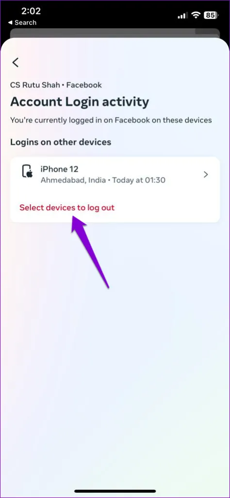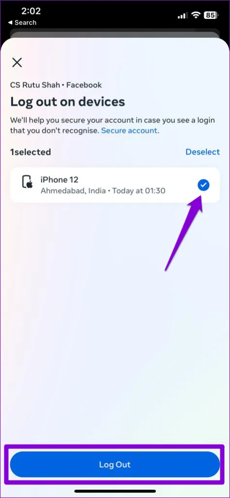 مرحله 4: روی \.دستگاه خود را از لیست انتخاب کنید و روی دکمه خروج از سیستم در پایین ضربه بزنید.