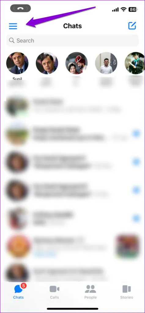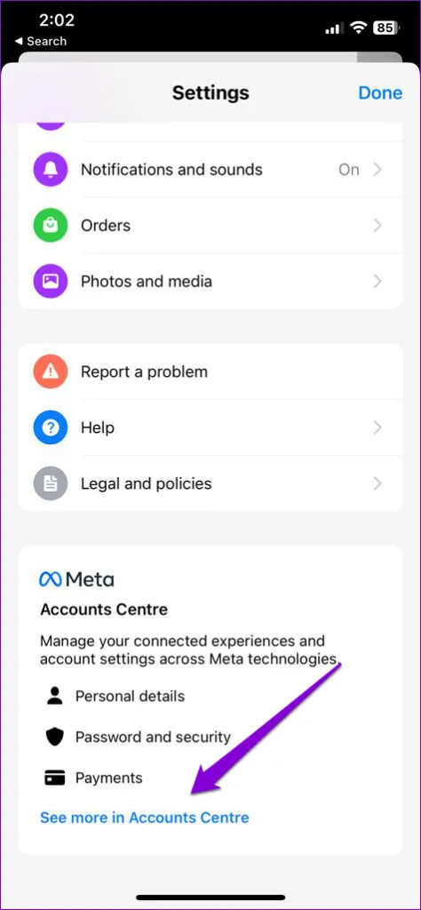 ممکن است مشکلات احراز هویت در حساب شما مانع از باز شدن یا کارکرد پیوندها در برنامه مسنجر شود. مرحله 1: برنامه مسنجر را باز کنید، روی نماد منو در بالا ضربه بزنید و سپس روی نماد چرخ دنده ضربه بزنید تا به منوی تنظیمات بروید..