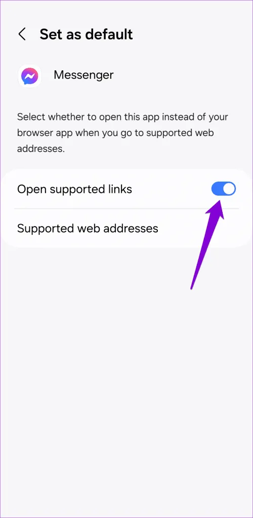 2.به مسنجر اجازه دهید پیوندهای پشتیبانی شده را باز کند (اندروید).