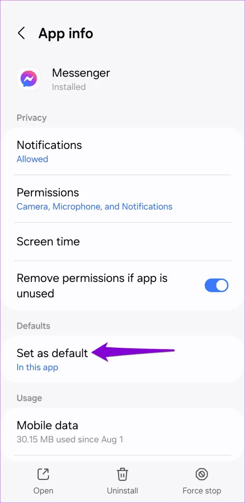 هنگامی که برنامه ای مانند مسنجر در اندروید یا آیفون شما بد عمل می کند، راه اندازی مجدد آن معمولا یک راه حل موثر است.بنابراین، ابتدا باید آن را امتحان کنید.برای بستن مسنجر در اندروید، روی نماد آن مدت طولانی فشار دهید و روی نماد «i» ضربه بزنید.سپس روی گزینه Force stop در گوشه سمت راست پایین ضربه بزنید.