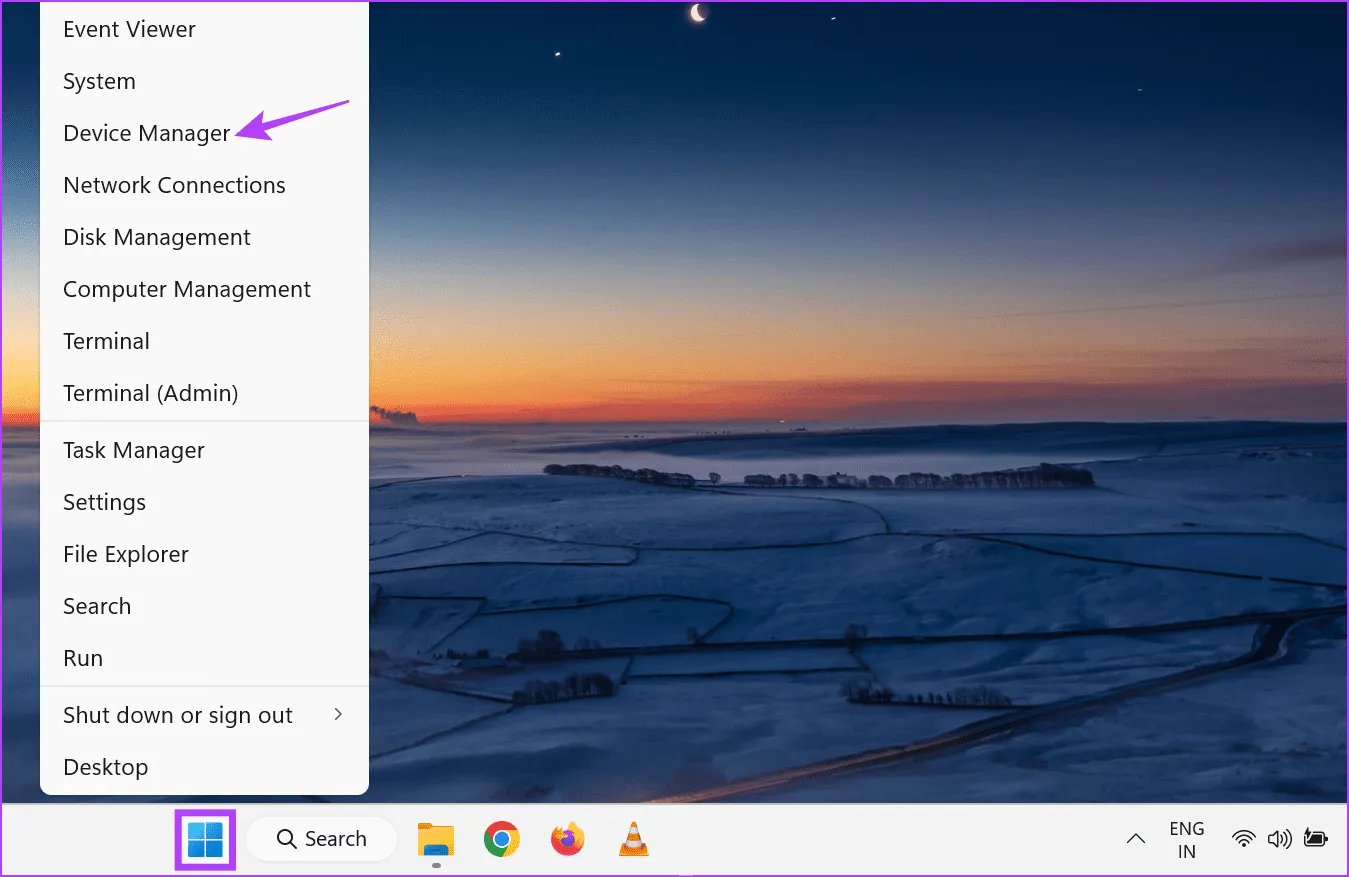 مرحله 1: روی Start کلیک راست کرده و روی Device Manager کلیک کنید.
